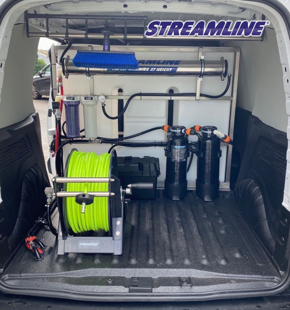 Profesionalus „Pure Water“ standartas. Dvigubas filtravimas garantuoja krištolinį skaidrumą be dryžių ir be chemijos. Mūsų teleskopinės lazdos leidžia dirbti greičiau ir saugiau – nelipant į pavojingą aukštį, o plaunant tiesiai nuo žemės.