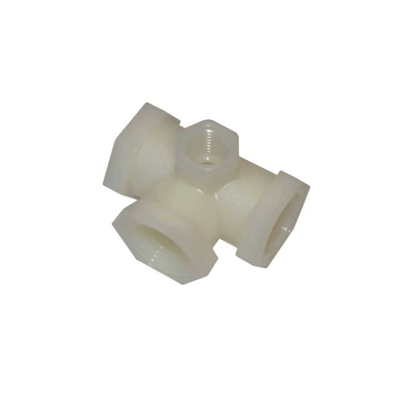 1/2 colio F sriegio lygi trišakė jungtis su manometro prievadu