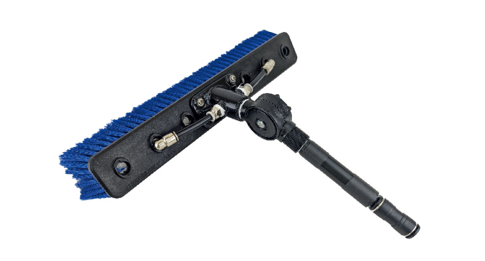 14 colių Streamline® šepetys – vidutinio standumo dvigubų šerių, su 2 purkštukų žemo slėgio kolektoriumi, yra universalus ir efektyvus įrankis minkštam plovimui. Minkštas plovimas yra žemo slėgio valymo metodas, naudojantis vandens ir valymo tirpalų derinį nešvarumams, apnašoms ir dumbliams pašalinti nuo įvairių paviršių, įskaitant stogus, dailylentes, terasas ir kiemelius. Tai saugesnė ir ekologiškesnė alternatyva tradiciniam plovimui slėgiu, kuris gali pažeisti jautrius paviršius.