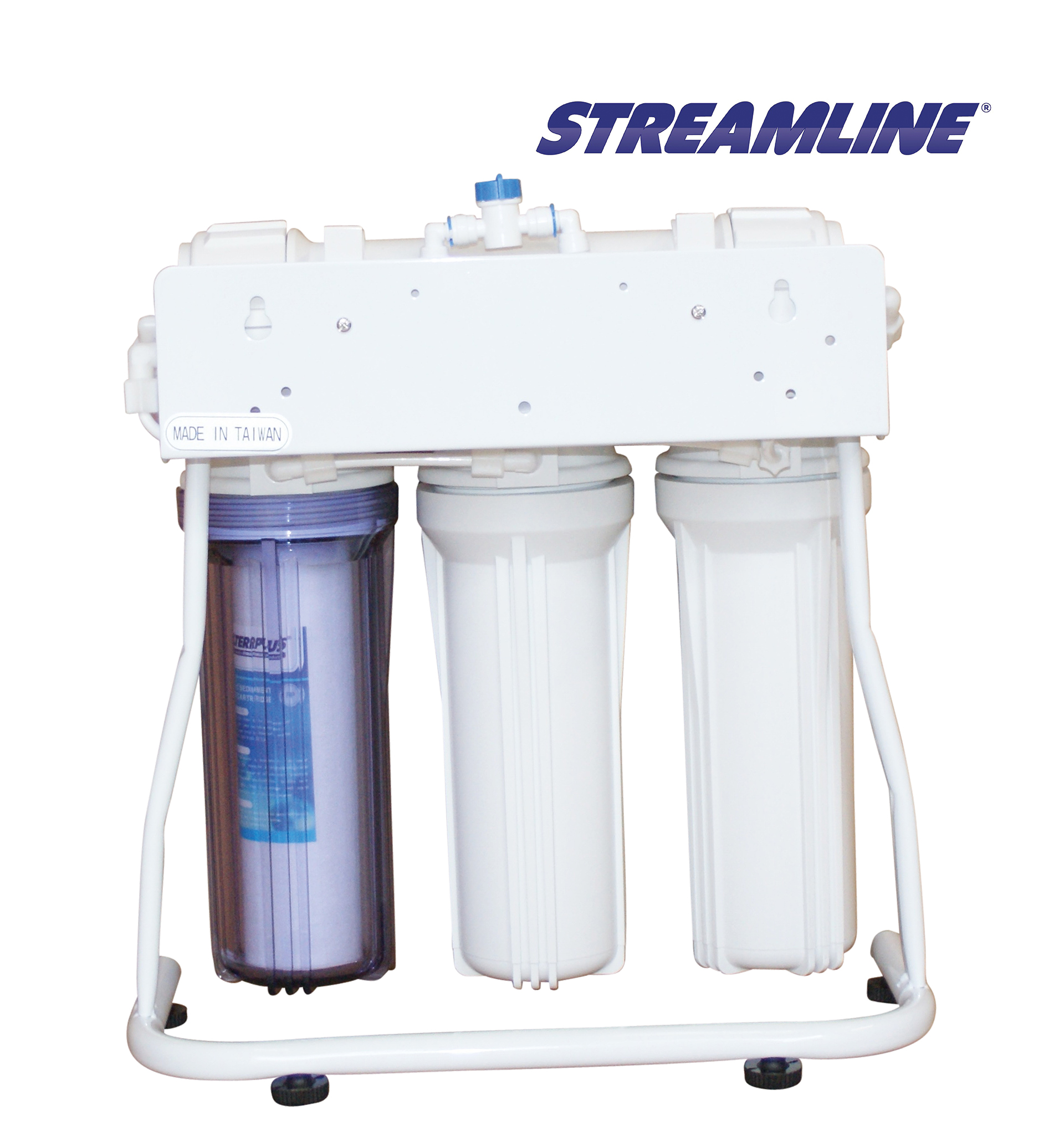 Ši 300GPD Filterplus Direct Flow RO sistema yra kompaktiška, dalinai surinkta sistema, užtikrinanti ekonomiškai efektyvų vandens valymą. Trigubai iš anksto filtruota, vienos membranos vandens sistema su slėgio matuokliu ir uždarymo vožtuvu, sumontuota ant tvirto metalinio rėmo.