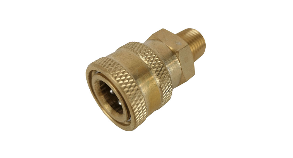 1/4 colio moteriška aukšto slėgio greito atjungimo jungtis, su 1/4 colio vyrišku sriegiu.
