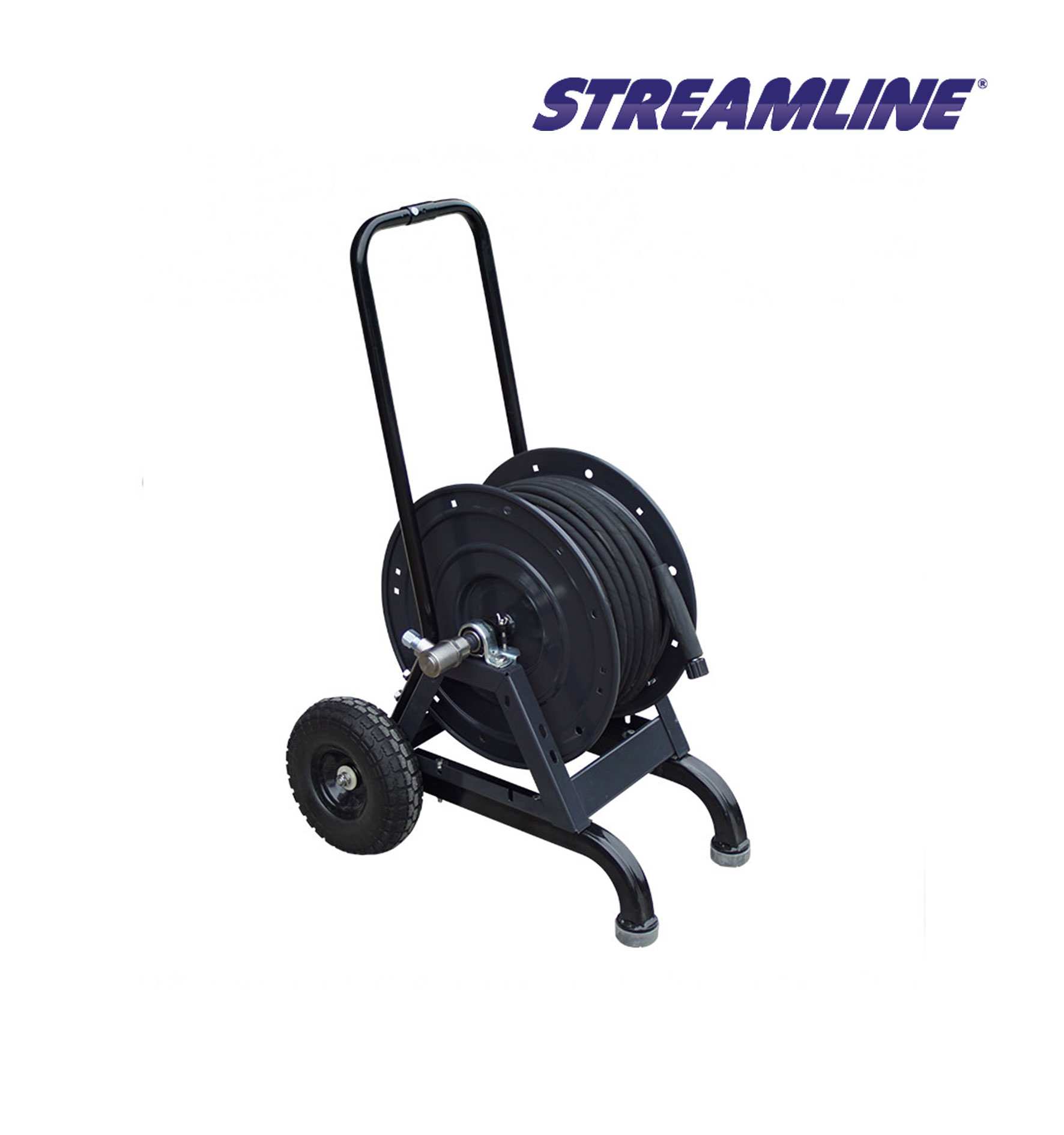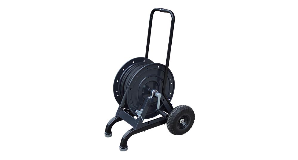 • Aukšto slėgio žarnos ritė 150′ x 3/8 inch – A-rėmo tipo vežimėlis