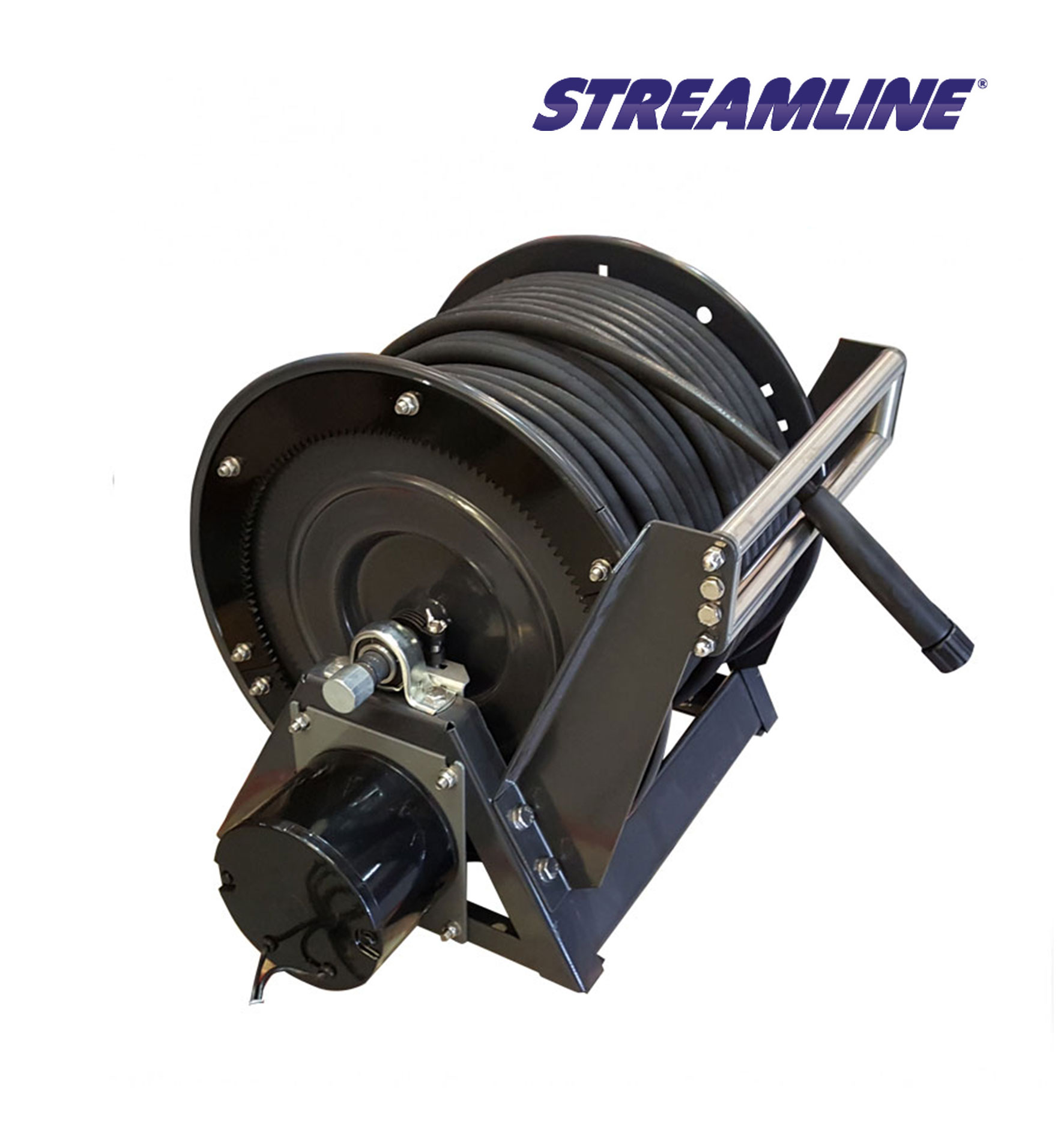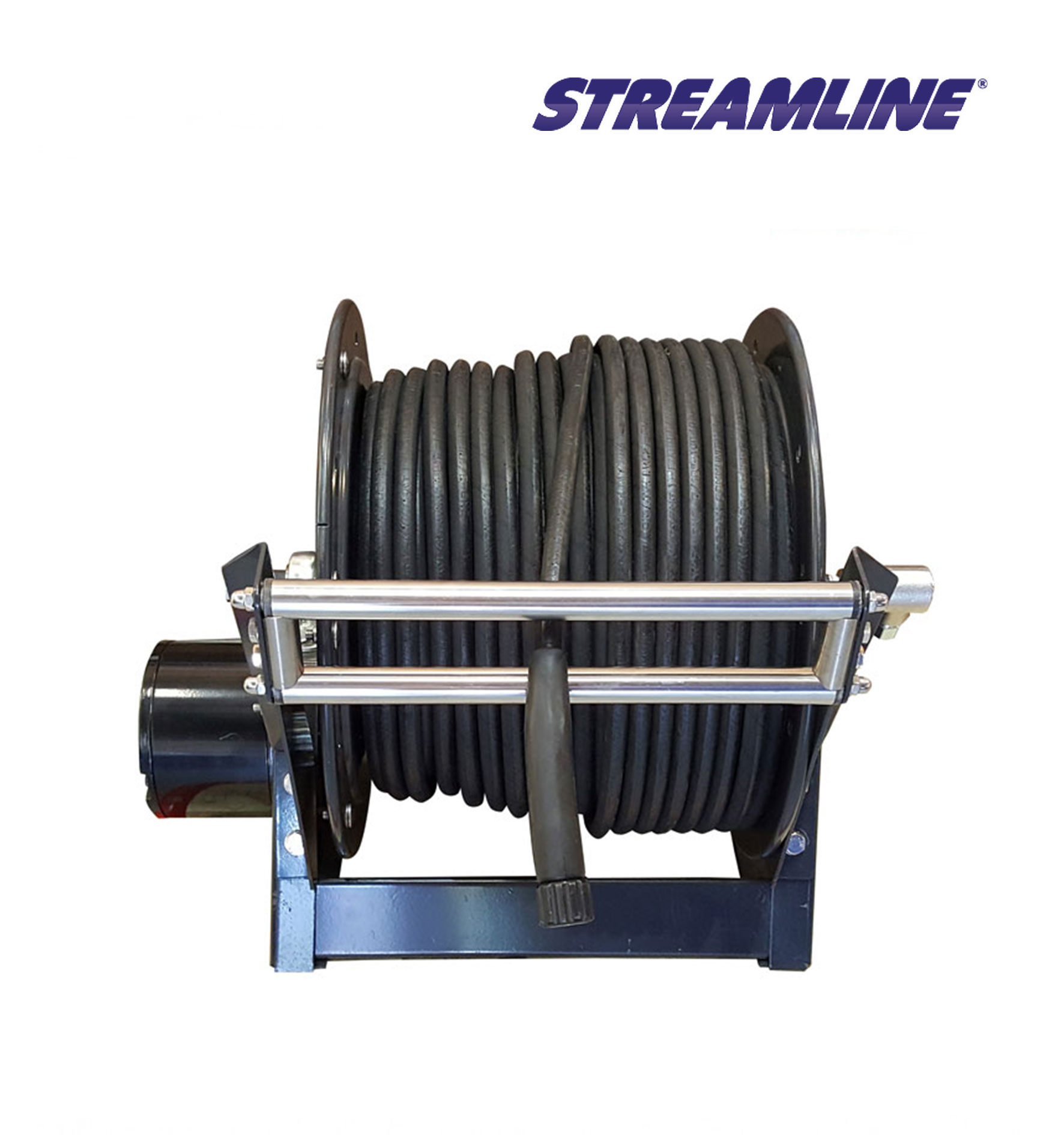 Aukšto slėgio žarnos ritė 300′ x 3/8 inch – A formos rėmo tipo su kreipikliu, varikliu, be žarnos