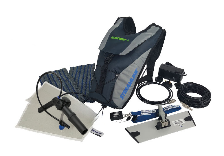 Streamline® Dragonfly® yra puikus sprendimas vidiniam stiklo valymui, kai paprastai reikalingos kopėčios ar kita pasiekimo įranga, nes leidžia valyti langus aukštyje, stovint ant žemės. Su paprasta siurblių sistema ir buteliu, pripildytu gryno vandens arba lengvo ploviklio stiklo valiklio kuprinėje, ir mikropluošto padu ant pasukamos šluotos plokštės, pritvirtintos prie teleskopo, Dragonfly® supaprastina vidinį langų valymą amžiams.