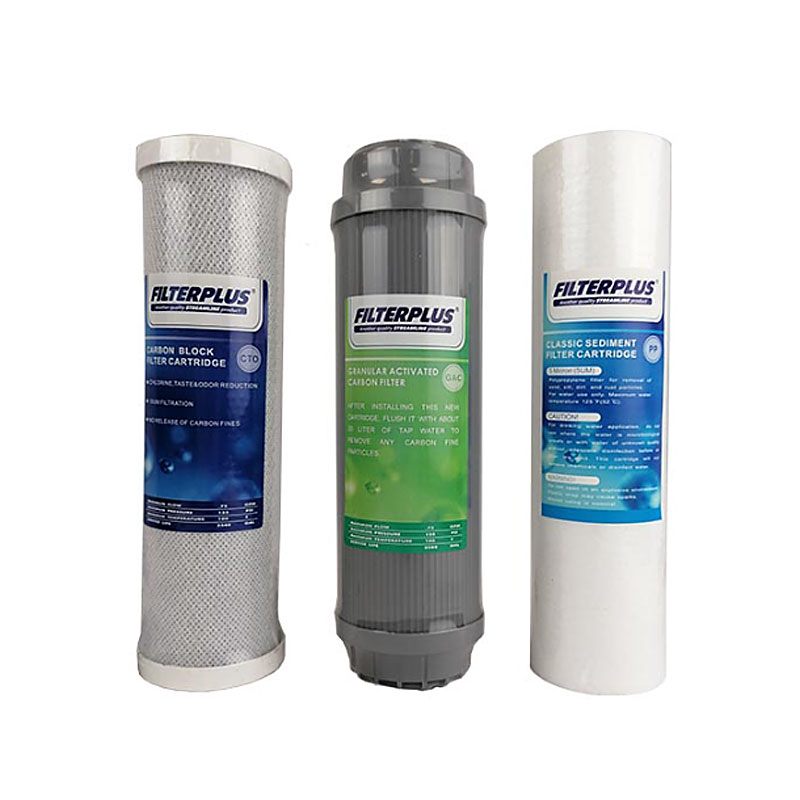 Filterplus® 10″ pirminio filtro kasetės rinkinys. Rinkinį sudaro: