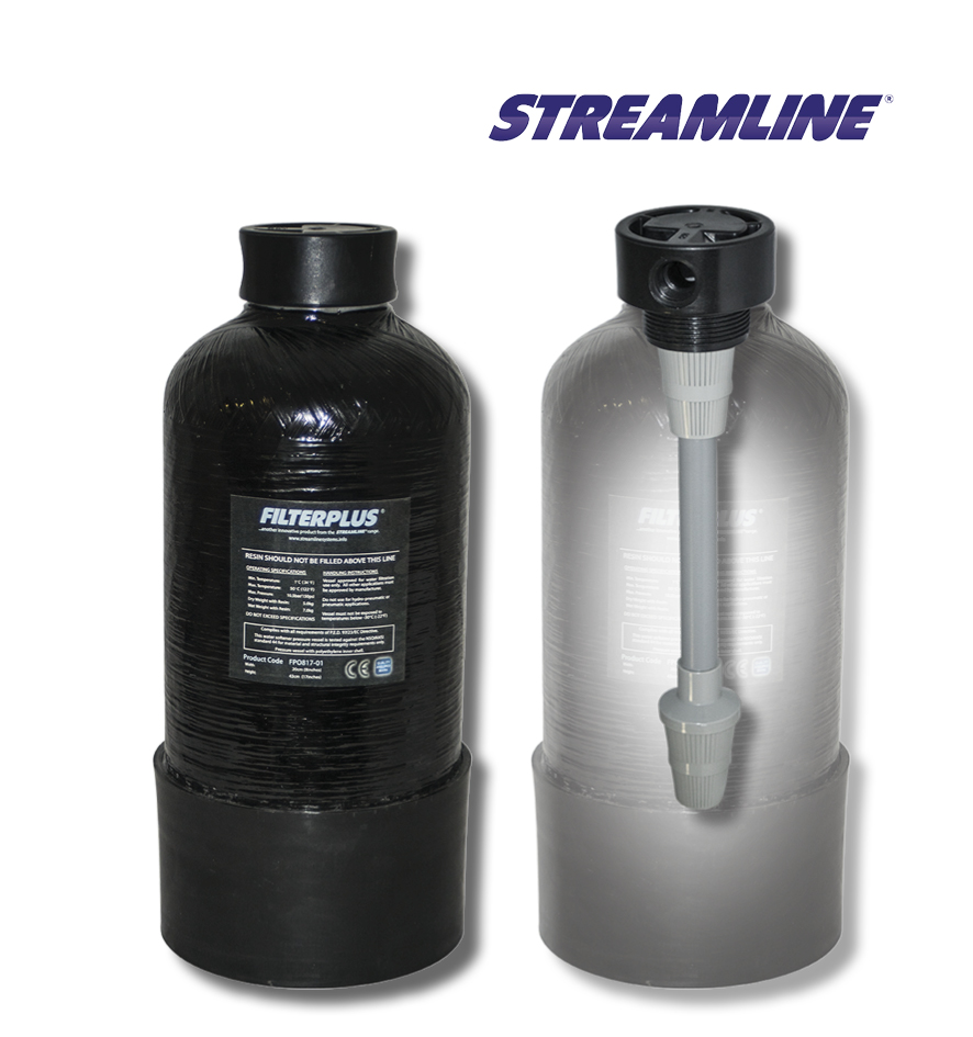 Filterplus® stovas ir galvutė su standartiniais 3/4 colio vidiniais prievadais, tinkantys 8 x 35 dervos indui (25,7 litro)