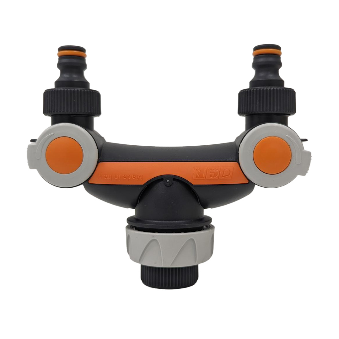Nailoninis dvigubas vyriškas adapteris su vožtuvu ir 1/2 bei 3/4 colio vidiniu sriegiu, kaina už vienetą