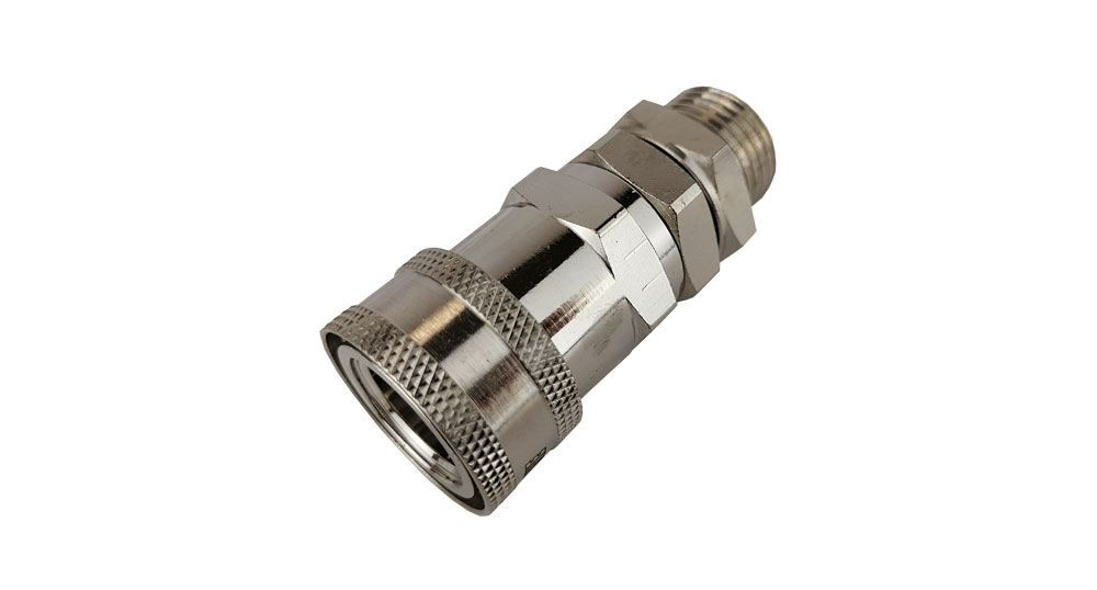Nerūdijančio plieno jungtis su 1/2 colio išoriniu sriegiu ir fiksavimo veržle
