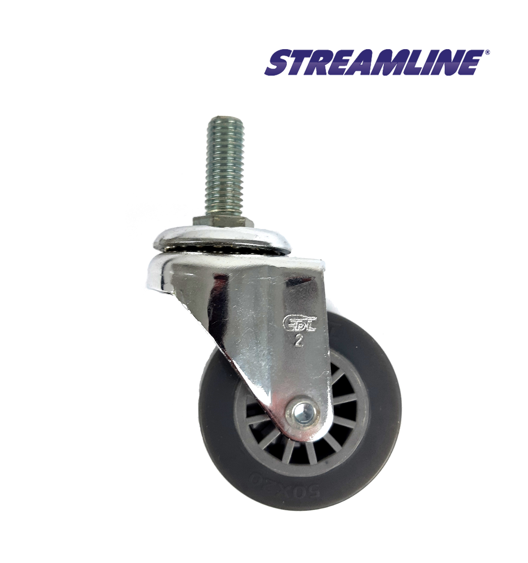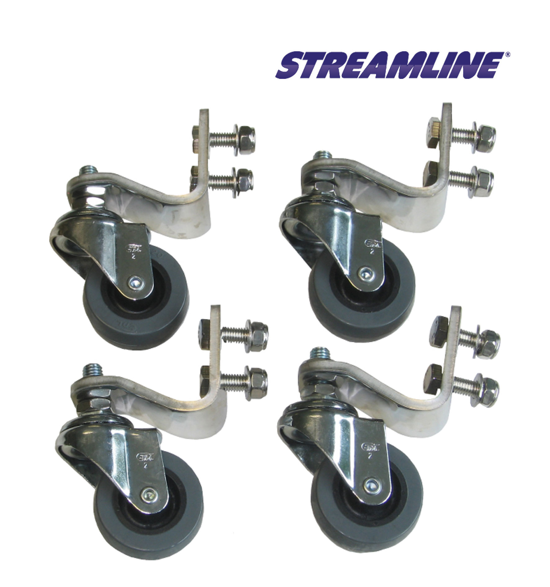 Rinkinį sudaro keturi ratukai, nerūdijančio plieno laikikliai, skirti tvirtinti prie plokščių paviršių valiklių, ir du tvirtinimo elementai kiekvienam ratukui.