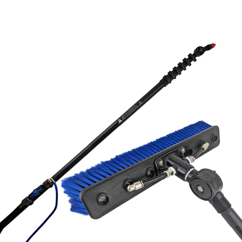 Softclean™ Pole Kit Complete yra aukščiausios kokybės minkšto plovimo (softwash) stulpo rinkinys su įvairiomis papildomomis funkcijomis, įskaitant paslėptą žarnos kampo adapterį, vieną didelį plokščią purkštuką, priekyje esančius horizontalius spaustukus ir lengvai naudojamą uždarymo vožtuvą stulpo apačioje.