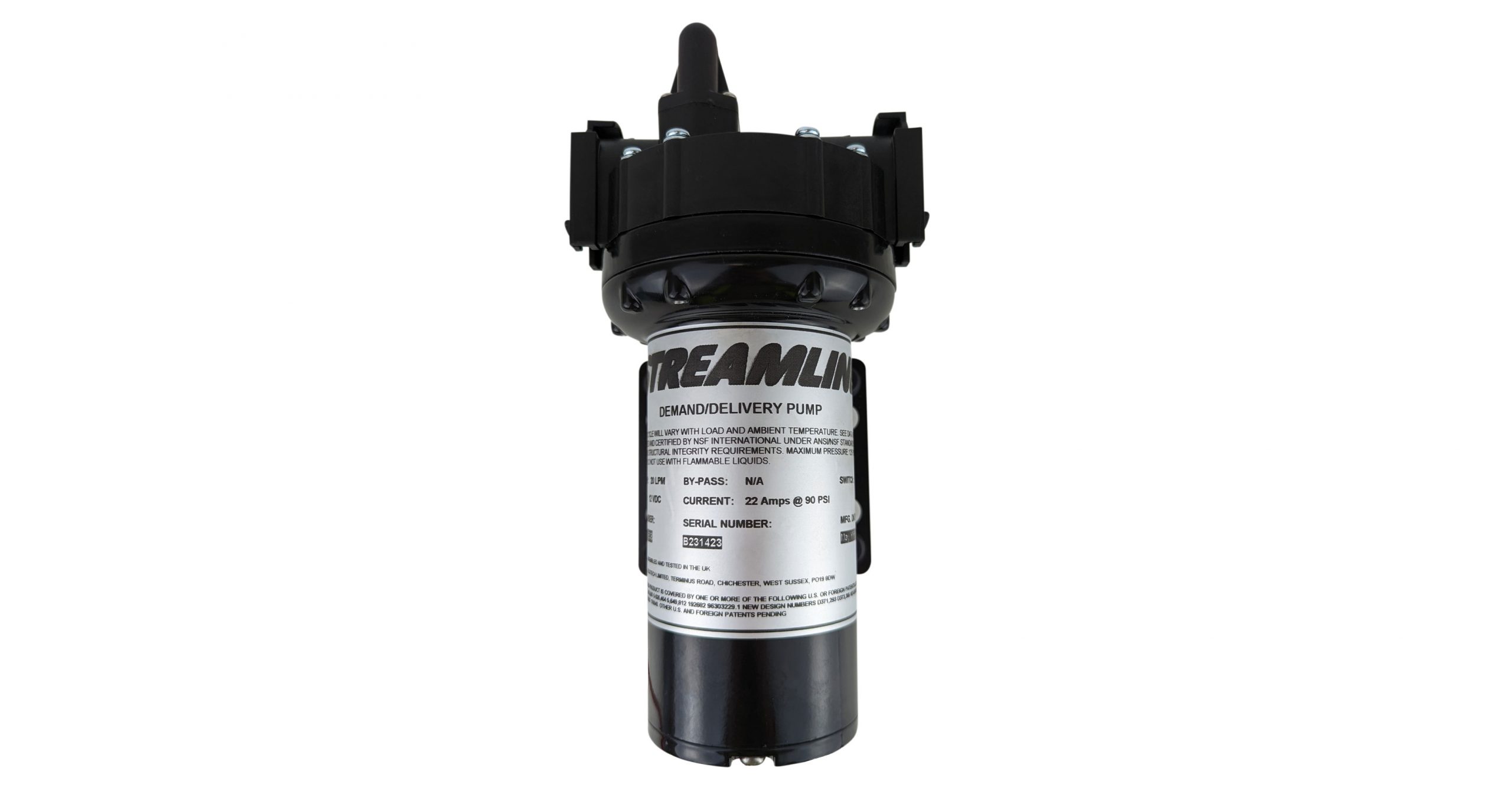 90psi Streamflo® 12v siurblys yra didelio našumo siurblys, skirtas naudoti minkšto plovimo įrangoje. Jis maitinamas 12 voltų akumuliatoriumi ir gali sukurti iki 90 psi slėgį bei 20,8 litrų per minutę srautą. Siurblys turi greito prijungimo jungtis, kad būtų lengva prijungti prie žarnų ir jungiamųjų detalių, ir yra aprūpintas Viton sandarikliais, užtikrinančiais ilgaamžiškumą ir atsparumą cheminėms medžiagoms.