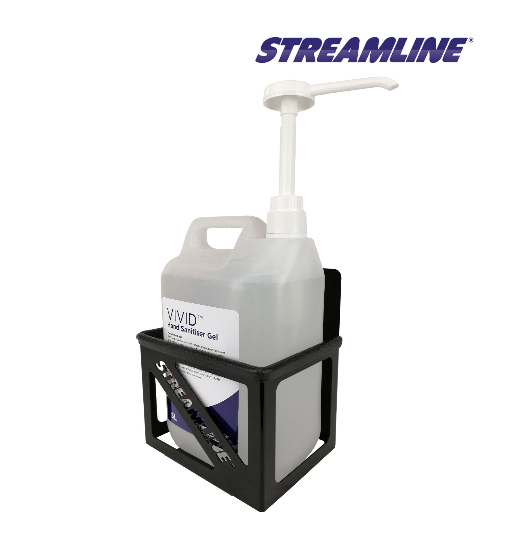 *Atkreipkite dėmesį, kad 5l rankų dezinfekavimo priemonė skirta tik iliustracijai, ji neįtraukta į laikiklį